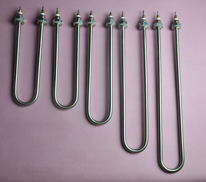 U型電熱管是在無縫金屬管(碳鋼管、鈦管、不銹鋼管、銅管)內放入電熱絲,并在空隙部分緊密地填充有良好的導熱性和絕緣性的結晶氧化鎂,電熱絲兩端是通過兩個引出棒與電源相接,空隙部分填滿有良好導熱性和絕緣性的氧化鎂粉后縮管而成,因電熱管彎曲像因為英文字母U所以稱為u型電熱管。